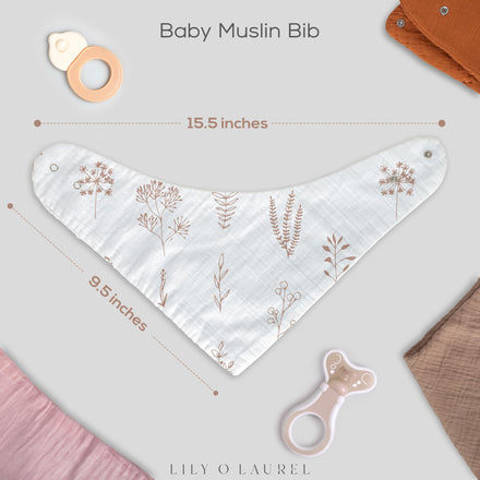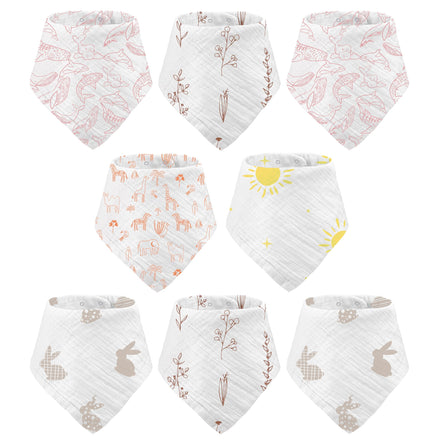LILY O LAUREL Muslin baby bandana bibs for drooling and teething, 100% cotton, Baby bibs for boys and girls, Muslin Bibs, Drool Bibs – Pack of 8