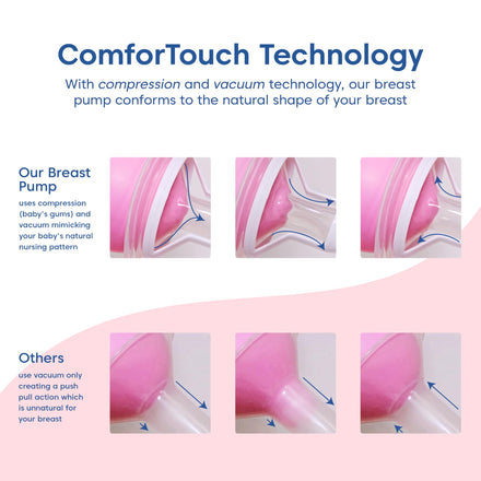 • ADVANCED VACUUM & COMPRESSION TECHNOLOGY that mimics a baby's natural nursing rhythm to allow milk expression with ease. Vacuum is determined by squeeze pressure and cycle speed is controlled by how often the handle is pulled, mothers are in control to what feels best