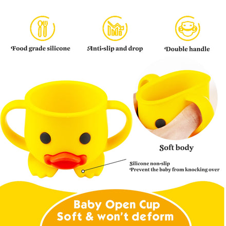 • Our toddler cup has easy-grip 2 handles and sturdy base. Silicone Baby Cup for Little Hands, Study and Reliable Open Cup for Baby Shower Gifts. The material is gentle for toddler gums even when teething.