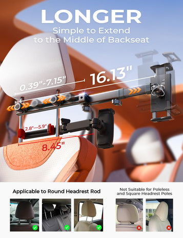• Sturdy & Safe reducing distractions for the driver, accesorios para carro ipad car mount hold tablet securely during bumps, fixed nut hook's depth on both ends of the tablet car mount is deeper, increasing the 3X stability during driving. Works seamlessly with convertible car seats (rear-facing and forward-facing), making it a car accessory for kids aged 0-10 years