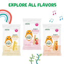 • Soft melt-in-the-mouth sticks of puffed organic corn sprinkled with strawberry that little hands can hold and mini mouths devour. Perfect for safe self-feeding. Or licking. Or smooshing.
