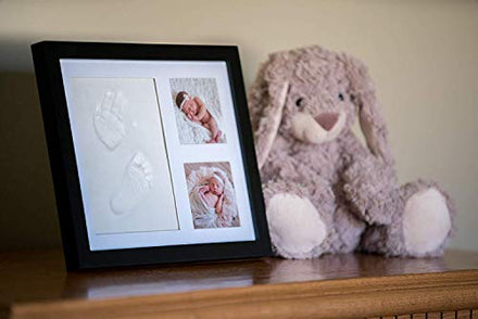 Little Hippo Baby Handprint Kit | Clay Footprint Keepsake Kit, Baby Prints Photo Frame, Infant Picture Frame, Baby Shower Gifts for Boy or Girl, Newborn Keepsakes (Black)