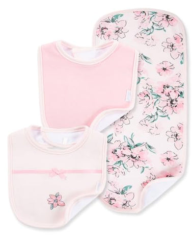 Little Me Clothes for Baby Girls' 100% Cotton 3-Piece Dream Floral Bib and Burp Set, 2 Bibs and 1 Shoulder Wrap
