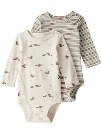 little planet by carter's Baby 2-pack Long Sleeve Bodysuits made with Organic Cotton, Beavers, Stripe, 6M