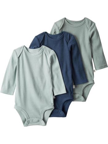little planet by carter's Baby 3-pack Long Sleeve Bodysuits made with Organic Cotton, Sage Navy, NB