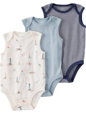 little planet by carter's Baby 3-pack Short Sleeve Bodysuits made with Organic Cotton, Coastal, 6M