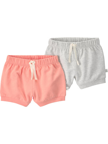 Little Planet by Carter's Girl 2-Pack Shorts Made with Organic Cotton, Heather Grey, Tropics Coral, NB