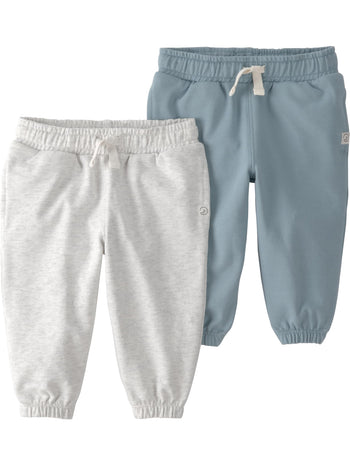 Little Planet by Carter's Neutral 2-Pack Pants Made with Organic Cotton, Blue Creek, Heather Grey, 2T