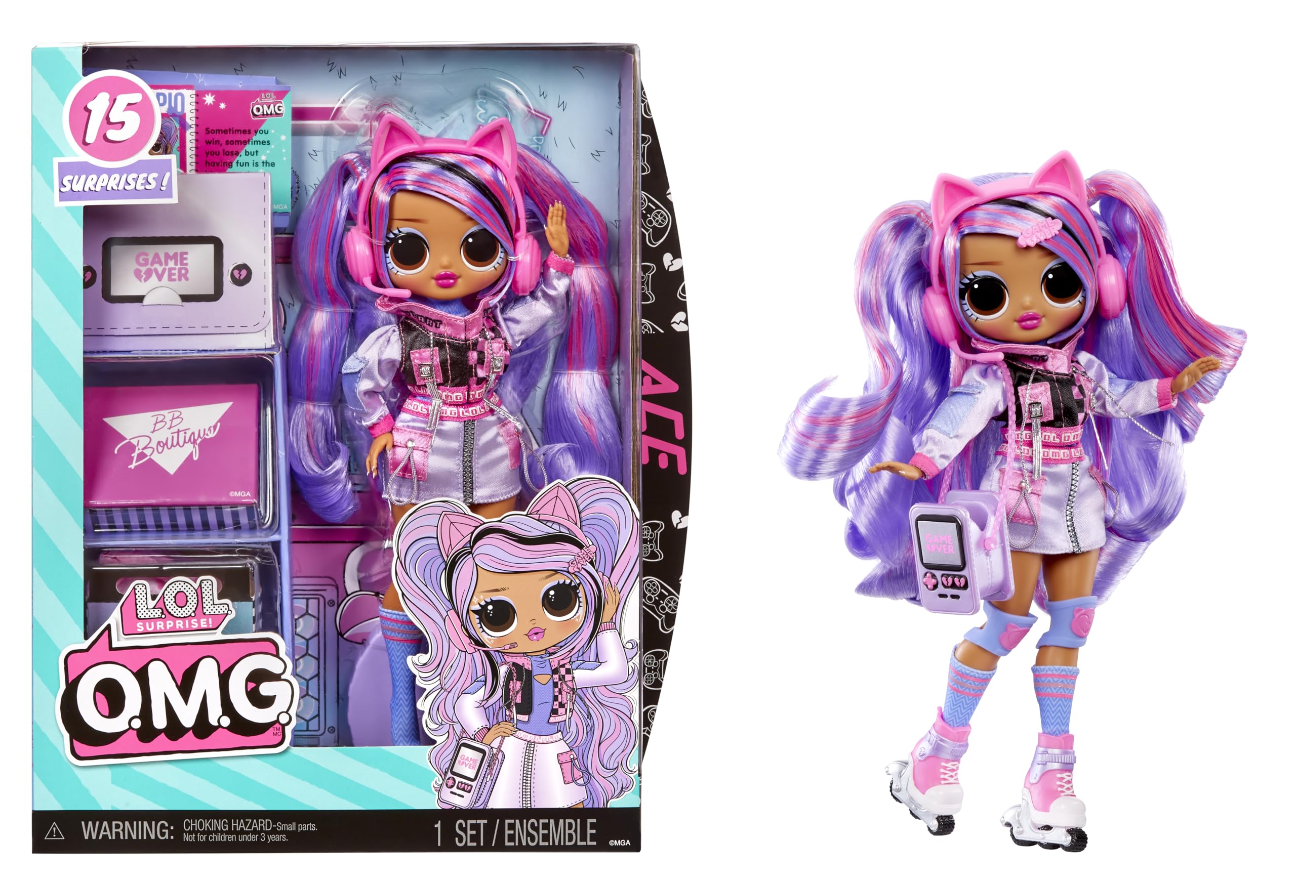 Details: Fast on skates, and fast with the controller! I beat all the levels, without a hair out of place. I share all my tricks, and secret moves, Cuz competition’s more fun when you compete with friends. – Ace Get ready to level up your fashion game with the all-new L.O.L. Surprise O.M.G. fashion doll Ace with 15 fabulous surprises to unbox including stylish fashions and accessories! Ace is the ultimate gaming queen who loves spending time dominating the gaming world and sharing all her secret tricks with her BFFs, but once she steps outside, you can always catch her rollin’ the streets in style with her trendy, colorful skates! She has stunning features, beautiful hair, her own stylish gaming outfit, and comes articulated for tons of posing opportunities. The latest L.O.L. Surprise O.M.G. fashion dolls are unexpected BFFs, celebrating the differences between friends that make each other stronger. Even though they are different, they all love what they love, and they’re all about being your authentic self no matter who you’re with. Discover what’s inside each box including a gorgeous L.O.L. Surprise O.M.G. fashion doll, fabulous fashions, shoes, accessories, glasses, a purse, a hairbrush, and a doll stand. Collect both dazzling new L.O.L. Surprise O.M.G. dolls: Ace and Pearla! L.O.L. Surprise fashion dolls with stylish hair, outfits and many detailed accessory pieces make a perfect toy for kids, including 4 years old and up for imaginative pretend play! As gifts for any special occasion, dolls provide hours of social play with siblings and friends! From MGA Entertainment, creators of L.O.L. Surprise fashion and collectible dolls, Rainbow High™ fashion dolls, Na Na Na Surprise dolls, Bratz® fashion dolls, MGA's Dream Ella™, MGA's Glitter Babyz™, Lalaloopsy™, Baby Born® Surprise baby dolls and collectibles, Little Tikes® kids toys and many other favorite brands.
