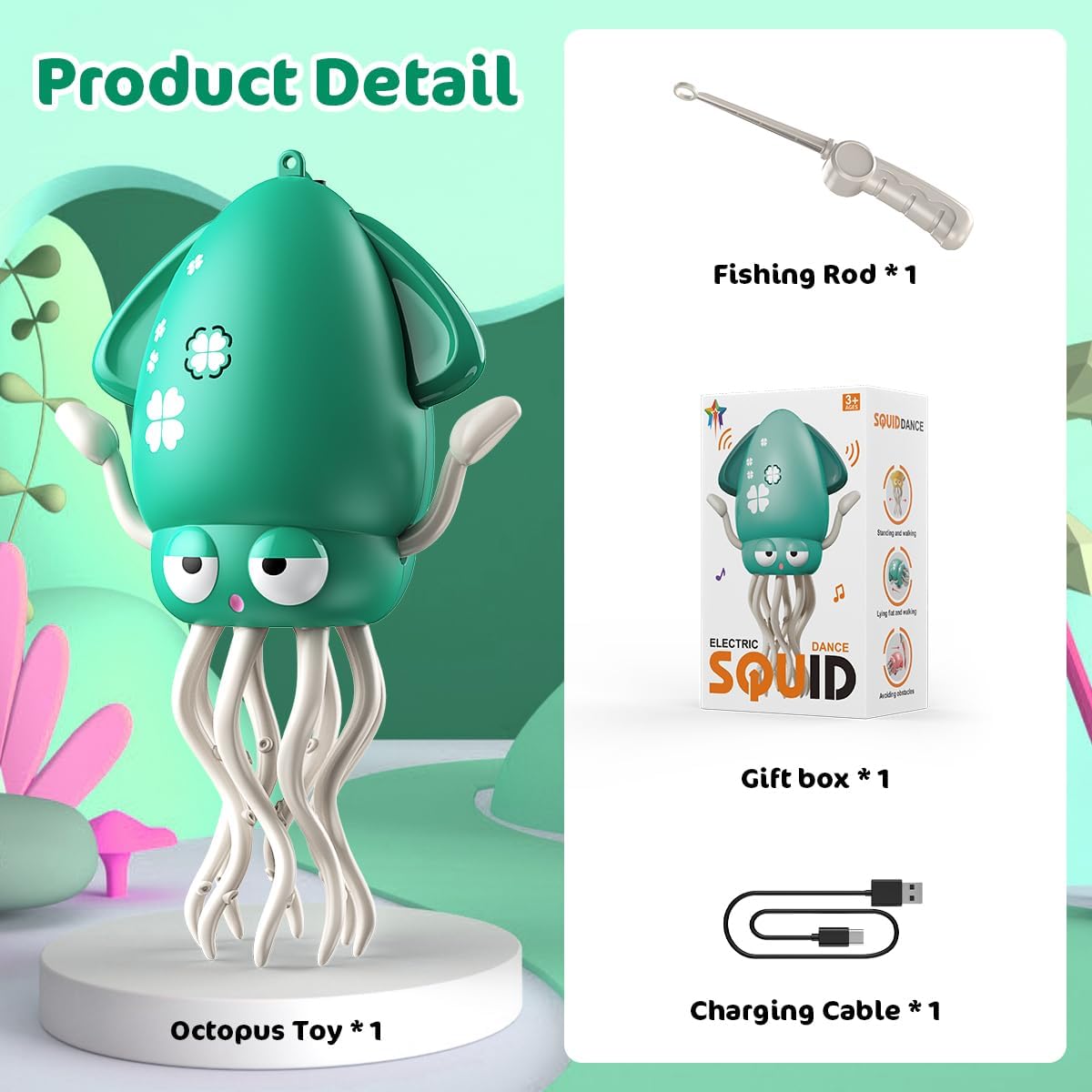 - πΆ Magical Dancing & Mesmerizing LED Light Show β Watch as its smart tentacles sway rhythmically to music, synchronized with vibrant LED lights, creating an immersive play experience that captivates kids instantly!