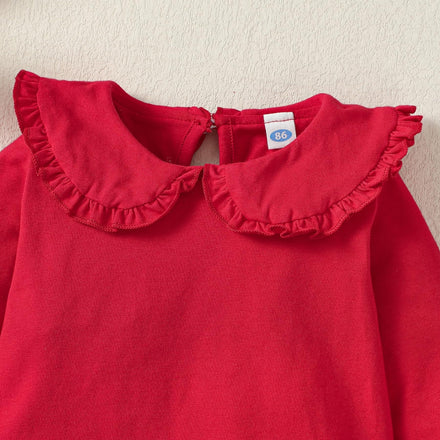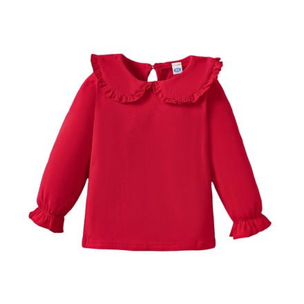 Magic Park 12M-6Y Baby Girl Long Sleeve Blouse Toddler Ruffle T-Shirt Kid Solid Color Tee Casual Tops Winter Clothes (24 Months, Long Red)