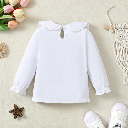 Magic Park 12M-6Y Baby Girl Long Sleeve Blouse Toddler Ruffle T-Shirt Kid Solid Color Tee Casual Tops Winter Clothes (24 Months, Long White)