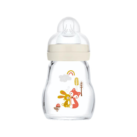 MAM Feel Good Slow Flow Premium Glass Bottle, Easy Switch Between Breast and Bottle, 5oz, 0+ Months, Unisex, 1 Pack, Cotton