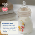 • PREMIUM GLASS: Made from high-quality, temperature resistant glass, the baby bottle can be heated, cleaned in the dishwasher and sterilized at high temperatures.