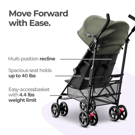 • Room to Roam: Discover the convenience of accessible underseat storage basket, perfect for storing all your essentials for a day out. Plus, this lightweight stroller comes with a handy cup holder, ideal for keeping a bottle of water or sippy cup within easy reach