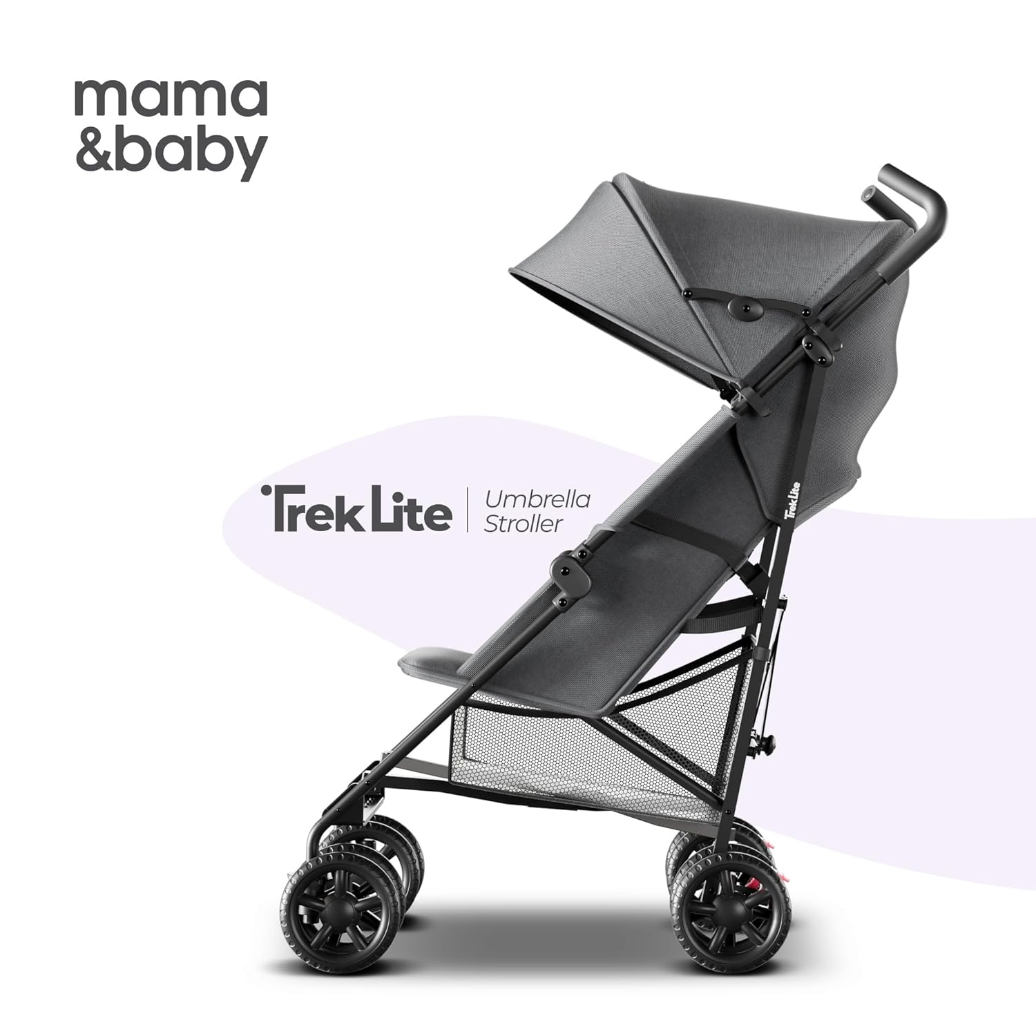 MAMA & BABY Trek Lite Umbrella Stroller - Compact Fold, Multi-Position Recline, Travel Stroller with Carry Strap, Large Storage and Cup Holder