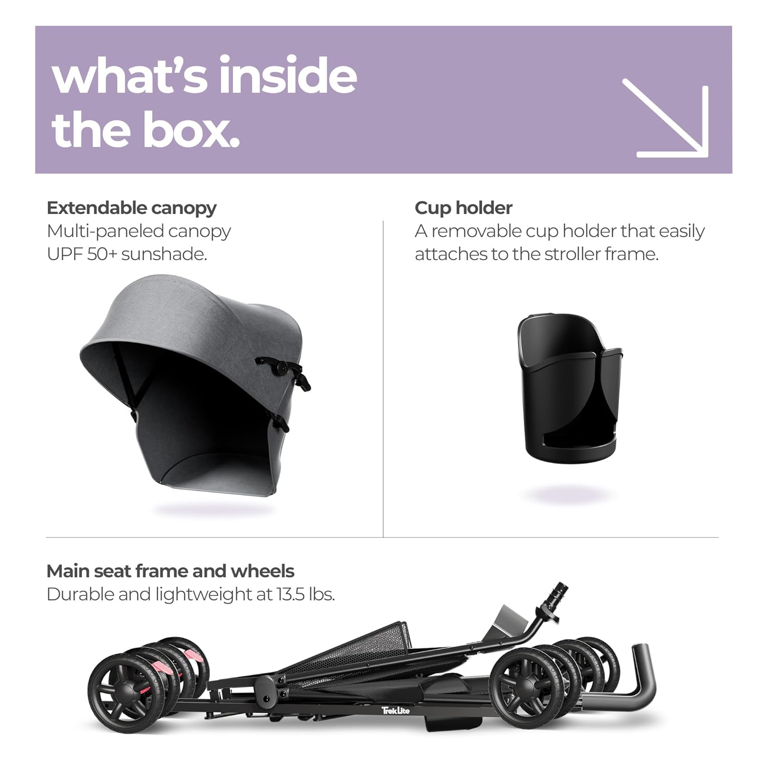 • Every Day, Every Way: Designed for convenience and quick, grab-and-go trips, the Trek Lite toddler stroller combines practicality with luxury. It pairs a durable, lightweight 13.5 lbs steel frame with premium fabrics and stitching for everyday use