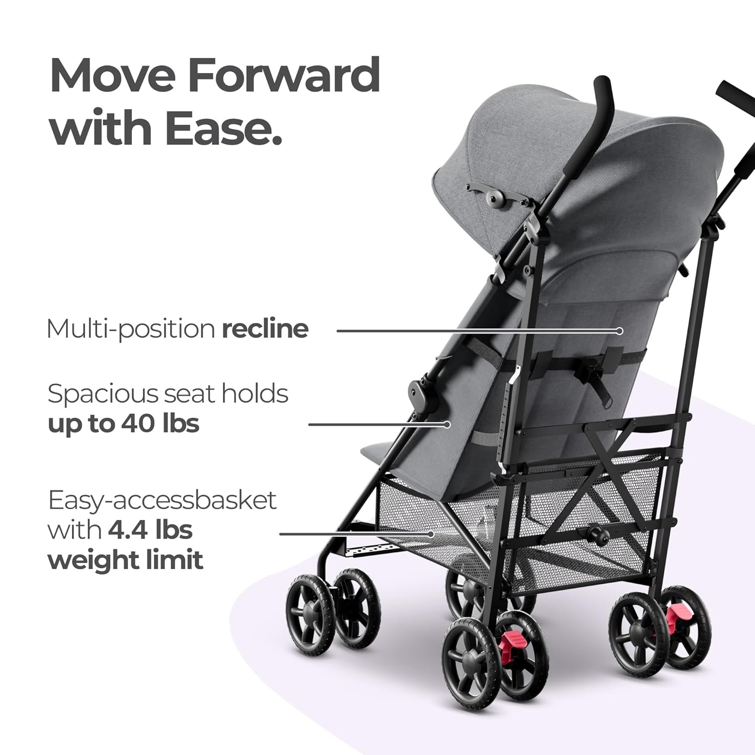 • Room to Roam: Discover the convenience of accessible underseat storage basket, perfect for storing all your essentials for a day out. Plus, this lightweight stroller comes with a handy cup holder, ideal for keeping a bottle of water or sippy cup within easy reach