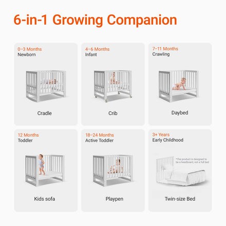 • Evonest‘s by Mamazing 6-in-1 Convertible Crib that Grows with Baby: Transitions from baby crib to cradle, playpen, mini sofa, daybed, and even a twin-size bed as your little baby grows. Includes easy-to-follow instructions for hassle-free assembly