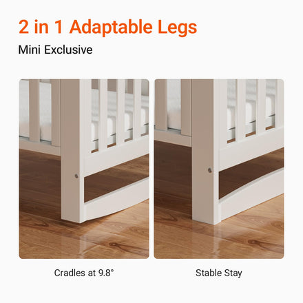 MAMAZING EvoNest Baby Crib, 6 in 1 Convertible Mini Crib with Wheels, 100% New Zealand Pinewood, 4 Adjustable Mattress Height Growing Bed, White