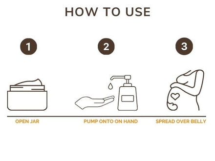 • BELLY BALM DIRECTIONS: Massage onto belly, breasts, buttocks and hips in the morning and evening. Follow with Organic Moisture Me Body Oil for better results. Continue using after childbirth. To soften the appearance of old stretch marks, use with Skin Rebound Booster. Certified Organic Sustainable Packaging and Fair Trade