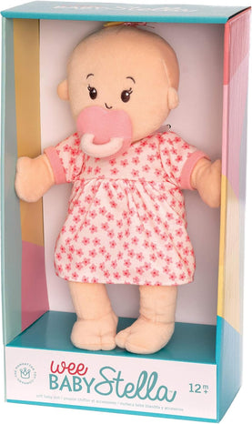 • BABY'S FIRST FRIEND: Wee Baby Stella by Manhattan Toy is an ideal first baby doll collection that will encourage little ones to role play, nurture and care. Wee Baby Stella dolls are completely soft and beautifully crafted with details such as a belly button and perfectly plump tummy.