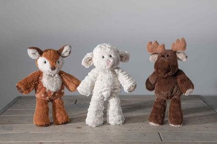 • Marshmallow Zoo Junior Lamb is an ultra soft friend with a textured fabric body with a wooly look that feels super soft