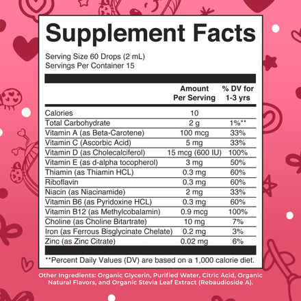 • Easy-to-take liquid form: MaryRuth's toddler multivitamin with Iron delivers essential nutrients like iron, zinc, and vitamins A, C, D3, B6, and B12 in an easy-to-dispense liquid, making it simple to ensure your toddler gets their daily vitamins while enjoying every drop! Our liquid iron comes from bioavailable Ferrochel, otherwise known as ferrous bisglycinate chelate.