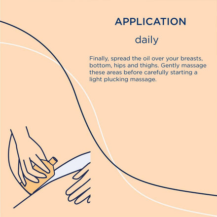 • DIRECTION: 1. Spread frei öl Massage Oil for Pregnant Women liberally over the belly and gently massage it in with stroking movements towards the belly button; 2. Now carefully take the skin between thumb and forefinger (starting at the belly button) and pluck it gently; 3. Finally, spread frei öl Massage Oil for Pregnant Women over your breasts, bottom, hips and thighs. Massage yourself in these areas using the same soft circular movements before gently starting a light pinching massage.
