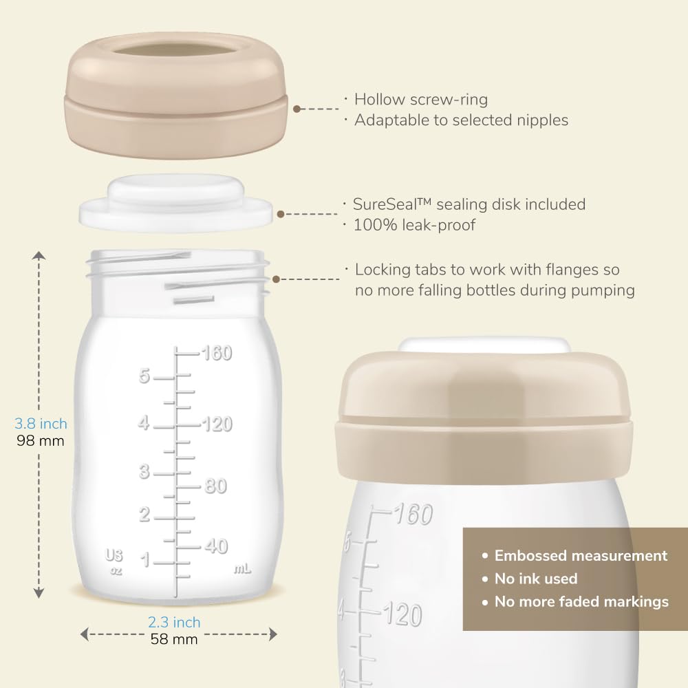 Maymom Wide Neck Breastmilk Collection n Storage Bottle 5.4 oz; Re-markable SureSeal Disc. Fits Spectra S2 Spectra S1 9 Plus.