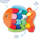 - Engaging Sensory Play: This cuddly fish friend is a squeaking & crinkling, multi-textured baby toy, with hidden pictures under brightly colored peek-a-boo scales, inviting exploration & early learning