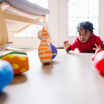 • 7-piece soft-plastic bowling set for toddlers and preschoolers