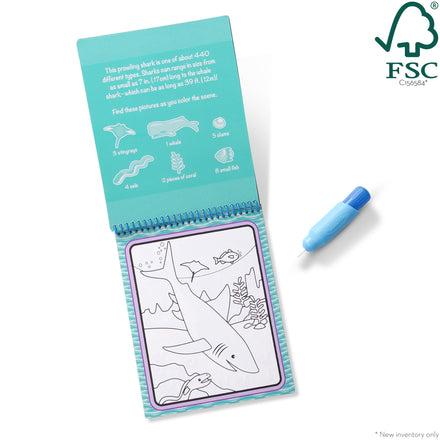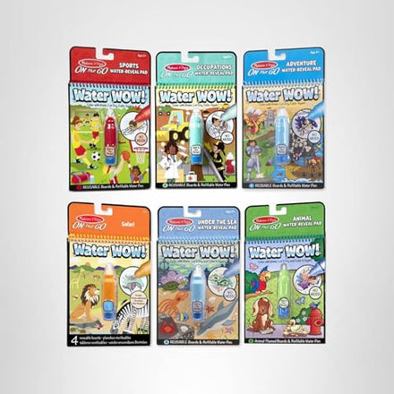Details: No-mess painting for kids! Each of the six themed pads (Sports, Occupations, Adventure, Safari, Under the Sea, and Animals) in this exciting paint-with-water coloring book set includes four reusable pages and a refillable water pen. Simply use the pen to color in each scene--details and vibrant color appear with every stroke! Then let the page dry to erase the pictures and color it in again and again. The chunky-sized water pen is easy for kids to hold and stores neatly right in the front cover, making Water Wow! an ideal on-the-go activity. Our water-painting books for kids promote fine motor skills, early writing/reading skills, and visual discrimination. Each of these color-with-water books is a spiral-bound pad that has 4 reusable pages and a water pen that stores in the cover. This inspires easy travel and storage for children to take on trips or while visiting relatives. The Melissa & Doug Water Wow! Reusable Color with Water Pad 6-Pack makes an ideal gift for kids from 3 to 7 years of age. Add the Melissa & Doug On the Go Magicolor Coloring Pad for even more screen-free play and learning. For more than 30 years, Melissa & Doug has created beautifully designed imagination- and creativity-sparking products that NBC News called “the gold standard in early childhood play.” This product is certified by the Forest Stewardship Council. FSC certification ensures that products come from responsibly managed forests that provide environmental, social, and economic benefits, and that forests are protected for future generations. Please note that FSC certification applies to new inventory only (FSC C156584)