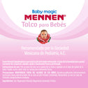 Details: Keep your baby's delicate skin protected with Mennen Baby Magic baby powder in its 200-gram pink presentation. Recommended by the Mexican Society of Pediatrics. Helps prevent irritation and protect your skin from chafing caused by moisture. Helps keep your skin fresh and scented. You can use it to pamper your baby and give him a relaxing massage.