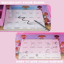 MENZOKE Kids Travel Tray for Toddler Car Seat, Lap Tray for Girl Activities with Dry Erase Board & Cooler Cup Holder, Road Trip Essentials Accessories with No-Drop Large Tablet iPad Holder Stand,Pink