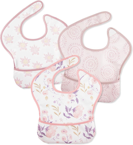 Mess Proof Baby Bib 3 Pack, Waterproof Led Weaning Baby Feeding Bibs with Food Catcher, Travel Feeding Bibs
