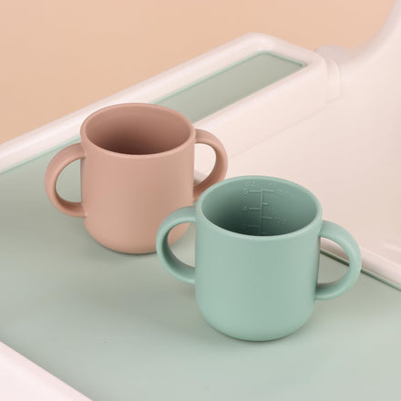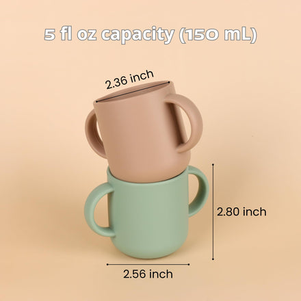 Mintlyfe Pack of 2 Silicone Drinking Mug Cup for Toddlers Kids (Natural/Cambridge Blue)