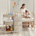 • Strict Quality Control - The lining of diaper caddy and 3 tier drawers are made of Oxford cloth, which is dustproof and easy to clean. Excellent touch feeling compared to plastic and metal. The baby diaper storage organizer cart is also equipped with 5 additional detachable dividers to make the space arrangement more reasonable, better categorization of baby items.