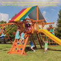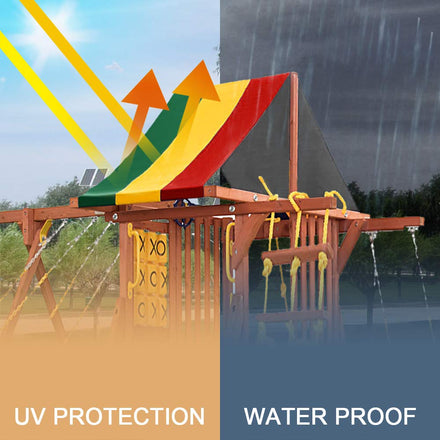 • UV Protection and Waterproof: Canopy roofs provide shade For wooden play sets and protect children from harmful UV rays. The Mofeez colorful tarp is a nice choice