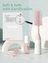 • Ultra-Soft Silicone Bristles - Our silicone bristles are gentle yet effective, ensuring a scratch-free clean for your bottles. The removable design and compact size make it convenient to carry around in the included travel bag.