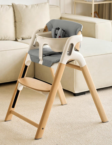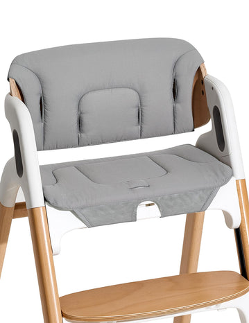 Details: Momcozy High Chair Cushion & Backrest Set - Ergonomic Support for Dinerpal Chairs, Machine Washable Gray Seat Pad with Non-Slip Design