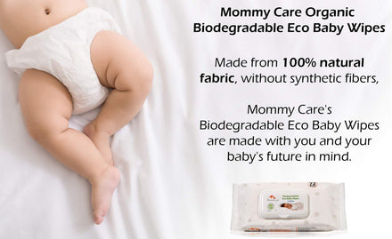Mommy Care Organic Biodegradable Eco Friendly Baby Wipes - Sensitive Skin Natural Child Care - 1 Pack / 72 Count