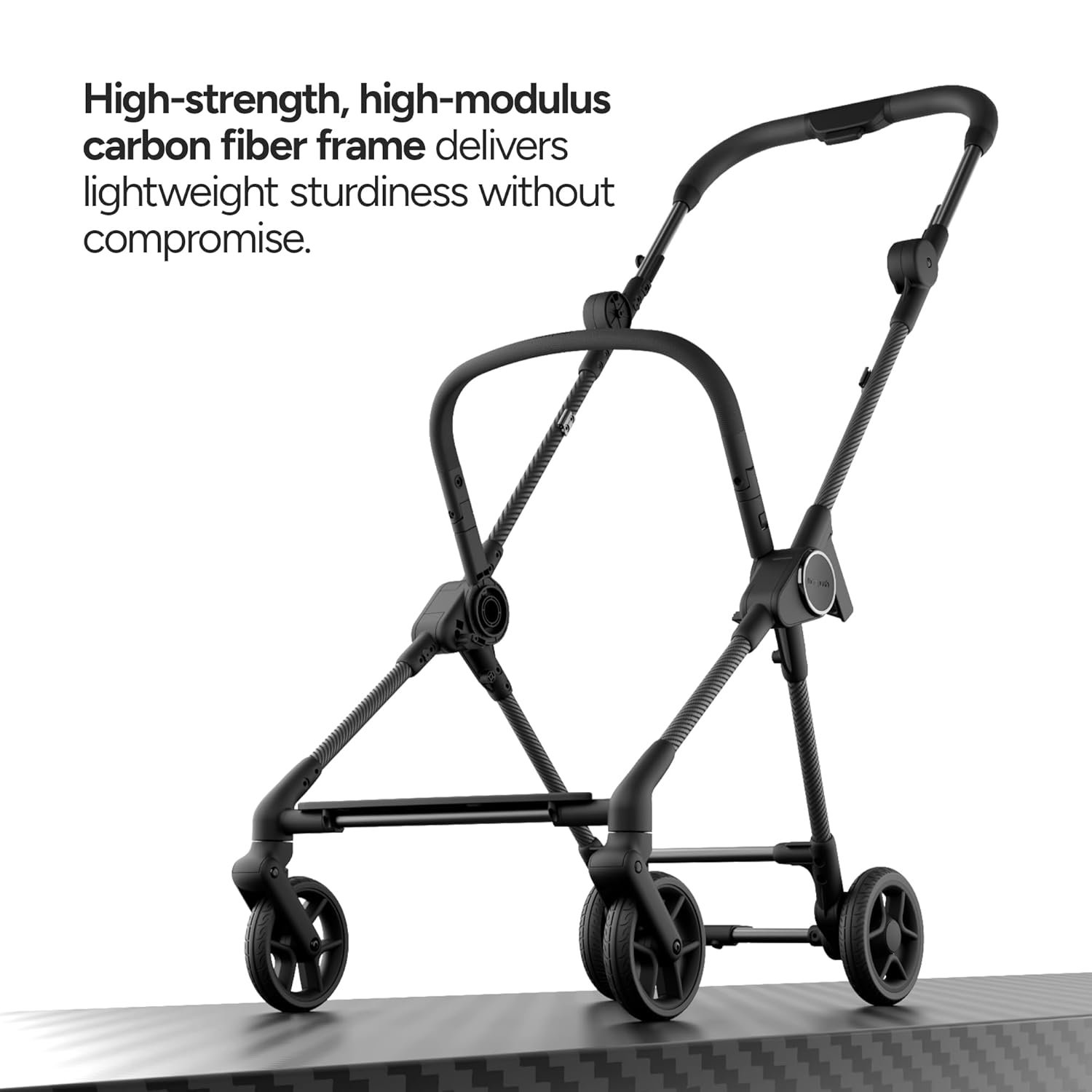 • Smoother Strolls Ahead: Conquer every path with full suspension and larger wheels for an ultra-smooth ride—effortless gliding for both baby and caregiver on endless travel days. High-strength, high-modulus carbon fiber frame delivers lightweight sturdiness without compromise. Plus, the quick-to-secure harness system and removable bumper bar ensures all-around safety and protection.