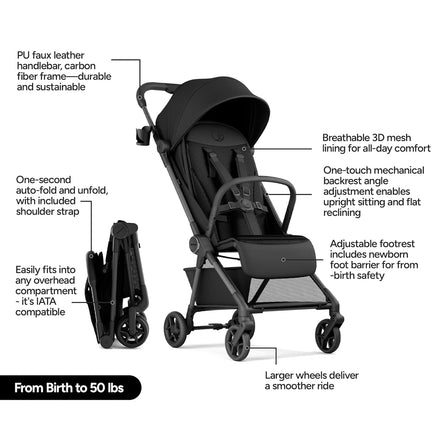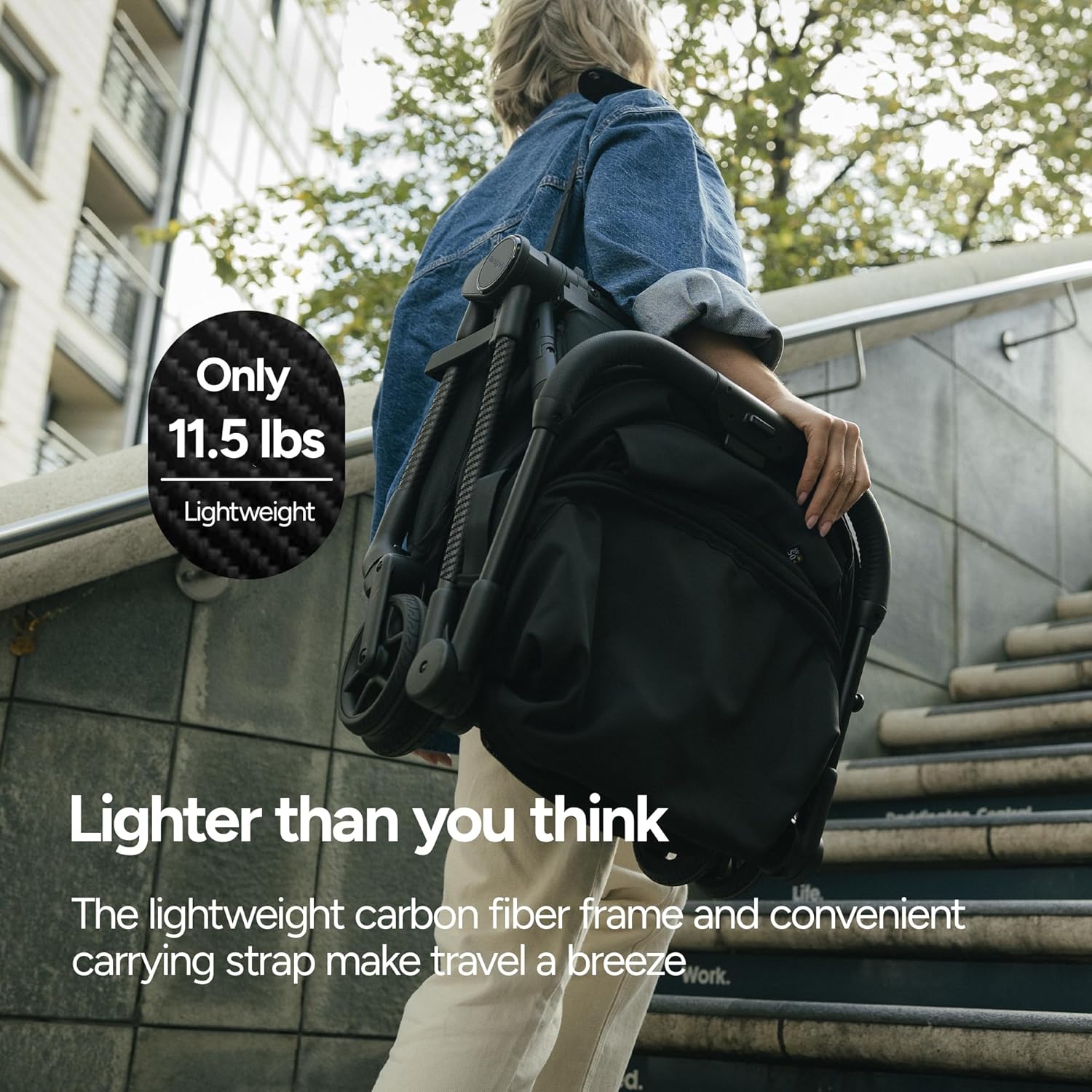 Mompush Nexis Carbon Travel Stroller, Ultra-Lightweight 11.5 lbs, Compact & Airplane Carry-On Approved, One-Second Auto-Fold, One-Hand Full Recline, from Birth to 50 lbs, JPMA Certified