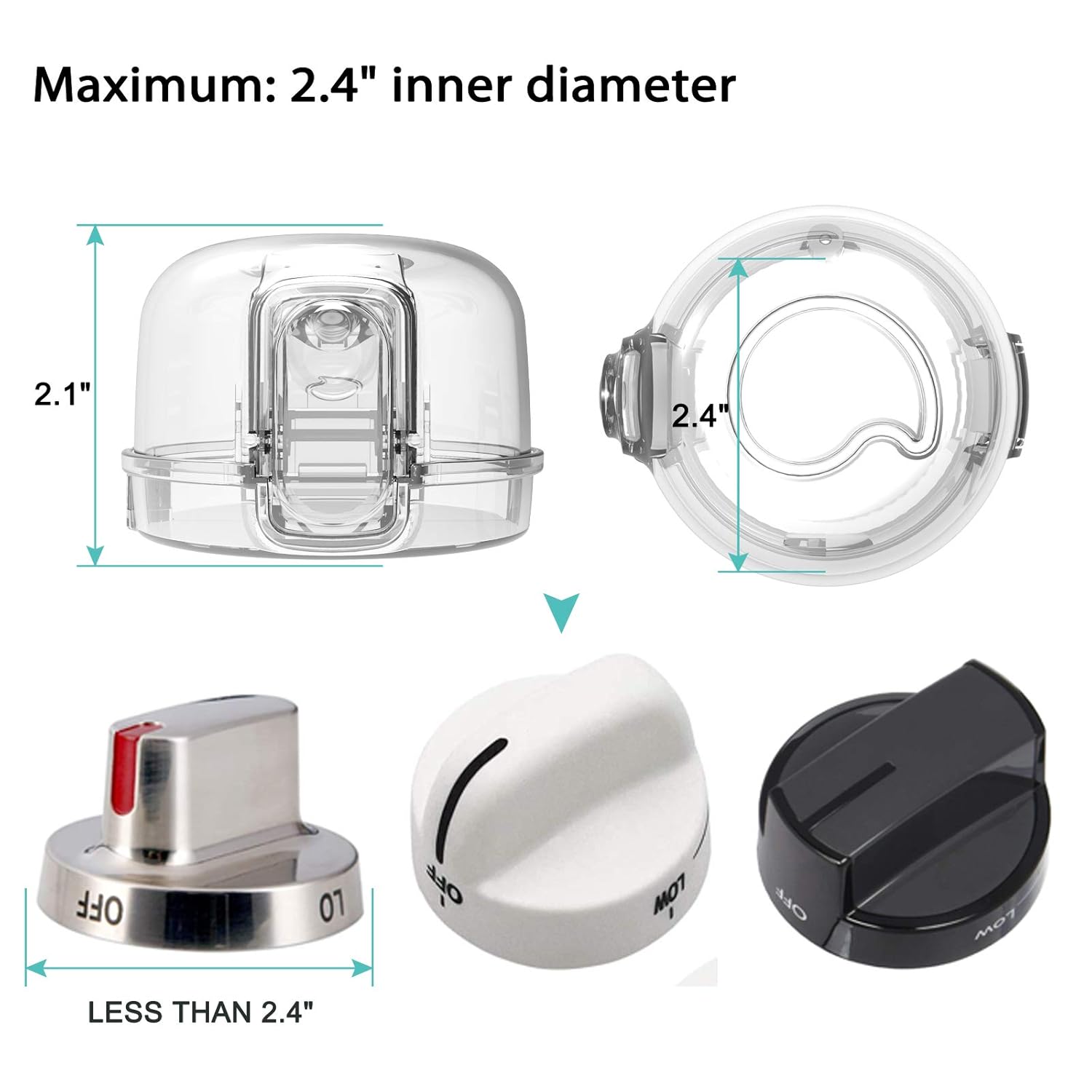• 2. [Universal Size] In order to fully cover more different shapes and sizes of gas stove knobs, the size has been upgraded to fit gas stove and oven knobs with an inner diameter of less than 2.4 inches.