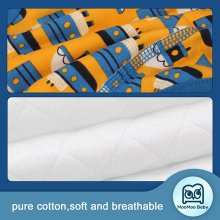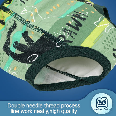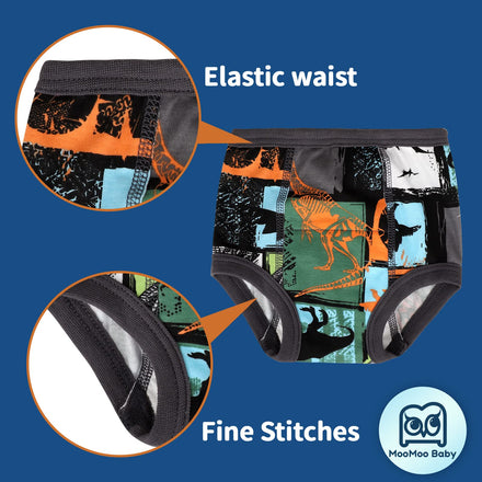 Toilet training pants are ideal for toddler boys and girls who want to feel like they're wearing 'big girl' or "big boy"pants while potty training and used when accidents are less frequent. MooMoo Baby Training Pants have been extra padded in the front and back. It's water resistant and better water imbibition than normal undies, committing to give baby the most comfortable experience and achieve effectiveness, easily to use and perfect choice for moms and toddlers!