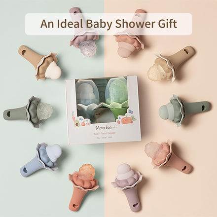 Moonkie Baby Fruit Feeder with Freezer Tray | BPA Free Silicone Infant Food Feeder | Two Sizes Pouches and Breastmilk Popsicle Molds for Cooling Relief | Baby Shower Gifts 4 Months+, 2 Pack