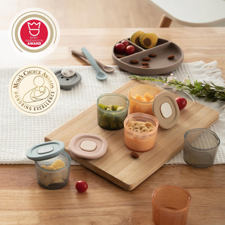 • ASTHESTIC PLEASING AND VERSATILE - With six color combinations to choose from, you can have fun with your opinionated toddler as they pick which multi-colored containers they want to eat from. As parents, you'll find our baby food containers incredibly practical. Moonkie baby food containers grow with your children and can be used well beyond the purée phase. Use them as a fun snack container, perfect for home, daycare, or on-the-go use.