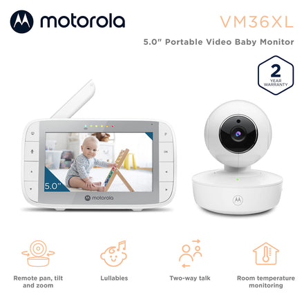 Motorola Nursery VM36XL Video Baby Monitor Camera, 480x272p, 1000ft Range, 2.4 GHz Wireless, 5" Screen, 2-Way Audio, Pan/Tilt/Zoom, Temp, Night Vision