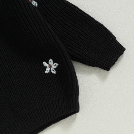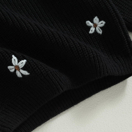 Mubineo Baby Girl Winter Clothes Cute Flower Sweater Crewneck Pullover Long Sleeve Knit Newborn Infant Sweaters (US, Age, 3 Months, 6 Months, Black)